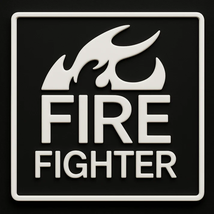 One side 3D. “FIRE FIGHTER” – 7cm x 7cm – 4mm thick. Velcro back.